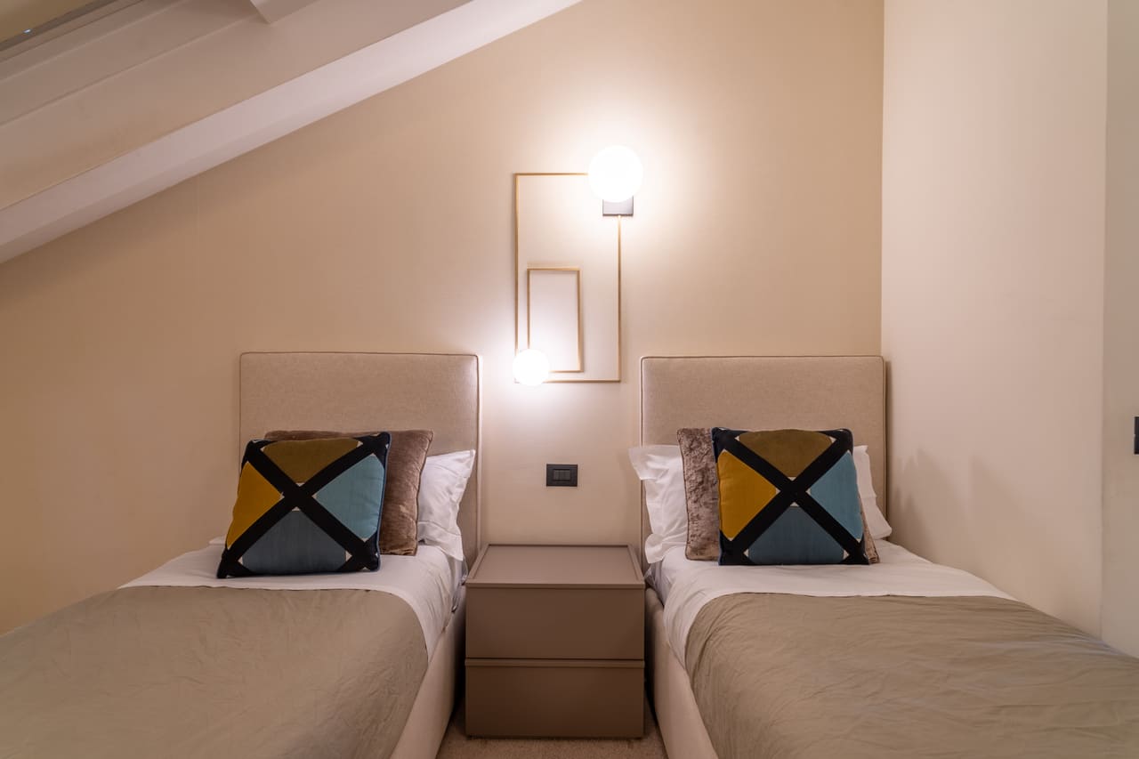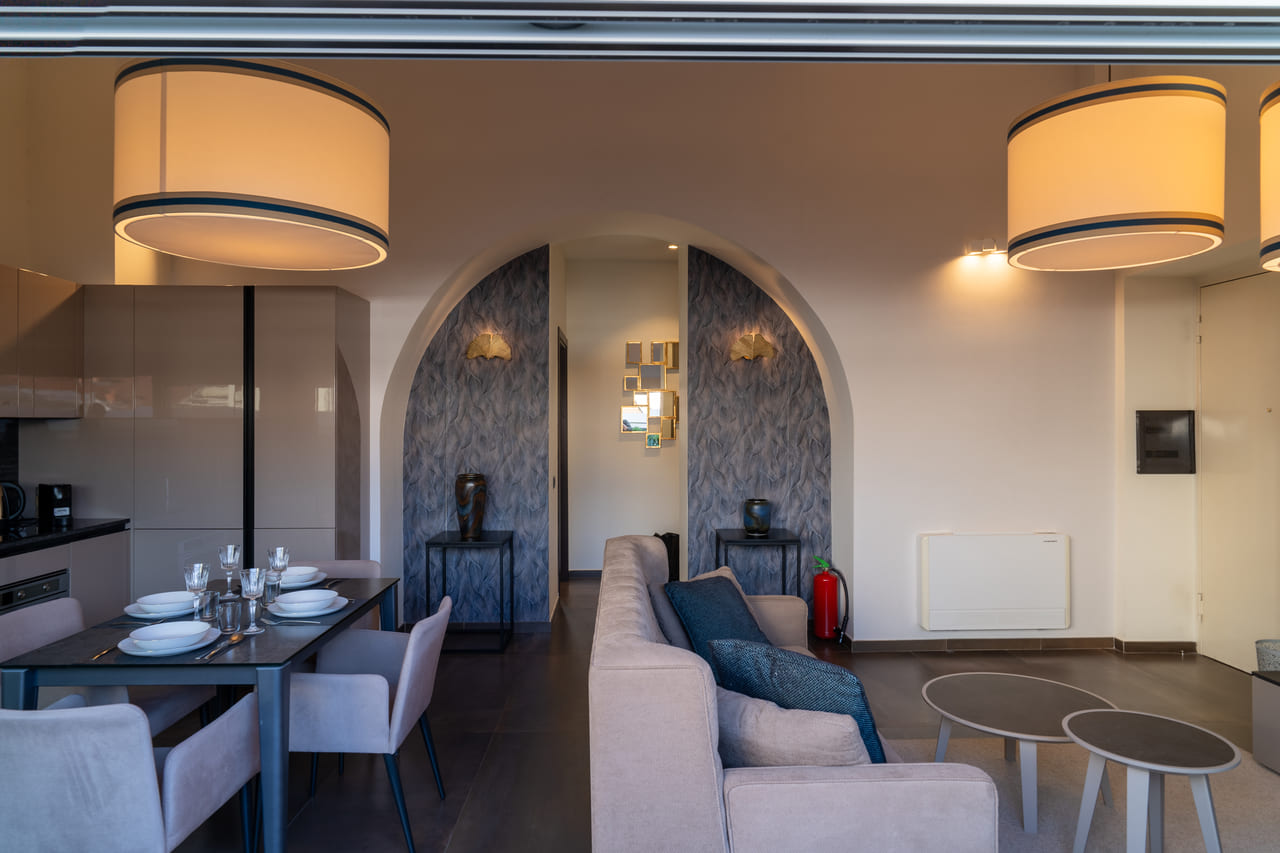 L’ appartamento è previsto di una cucina open space ben attrezzata, con piano cottura ad induzione, un frigorifero ad ampia capienza e una lavastoviglie, due bagni e un angolo lavanderia. La sistemazione inoltre offre un terrazzino attrezzato, i piani superiori sono accessibili tramite ascensore.