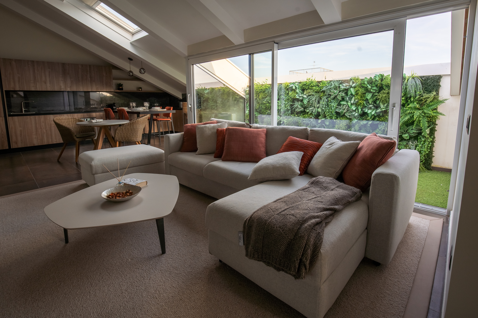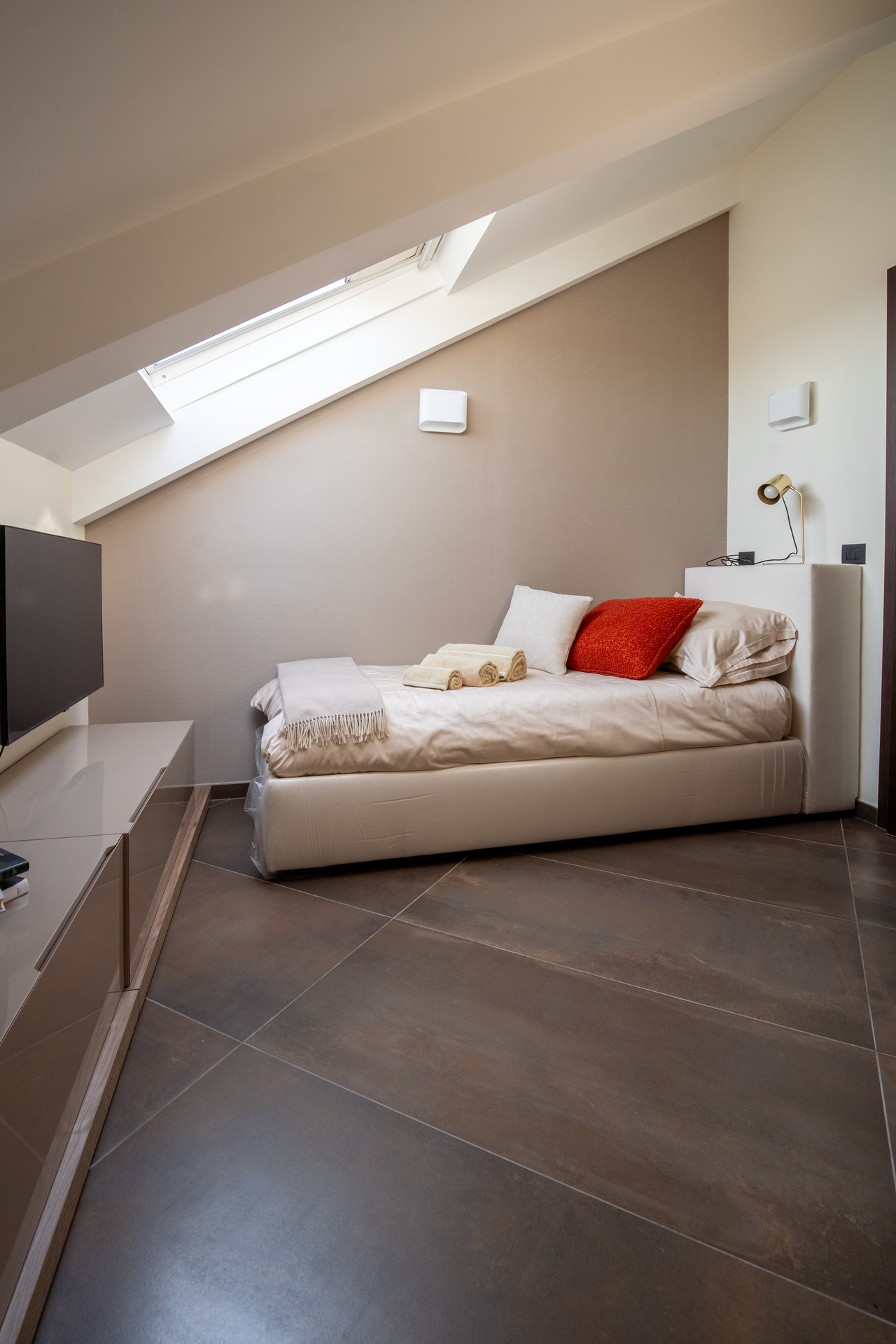 L’ appartamento è previsto di una cucina open space ben attrezzata, con piano cottura ad induzione, un frigorifero ad ampia capienza e una lavastoviglie, un bagno con cabina doccia e un angolo lavanderia. La sistemazione inoltre offre un terrazzino attrezzato, i piani superiori sono accessibili tramite ascensore.